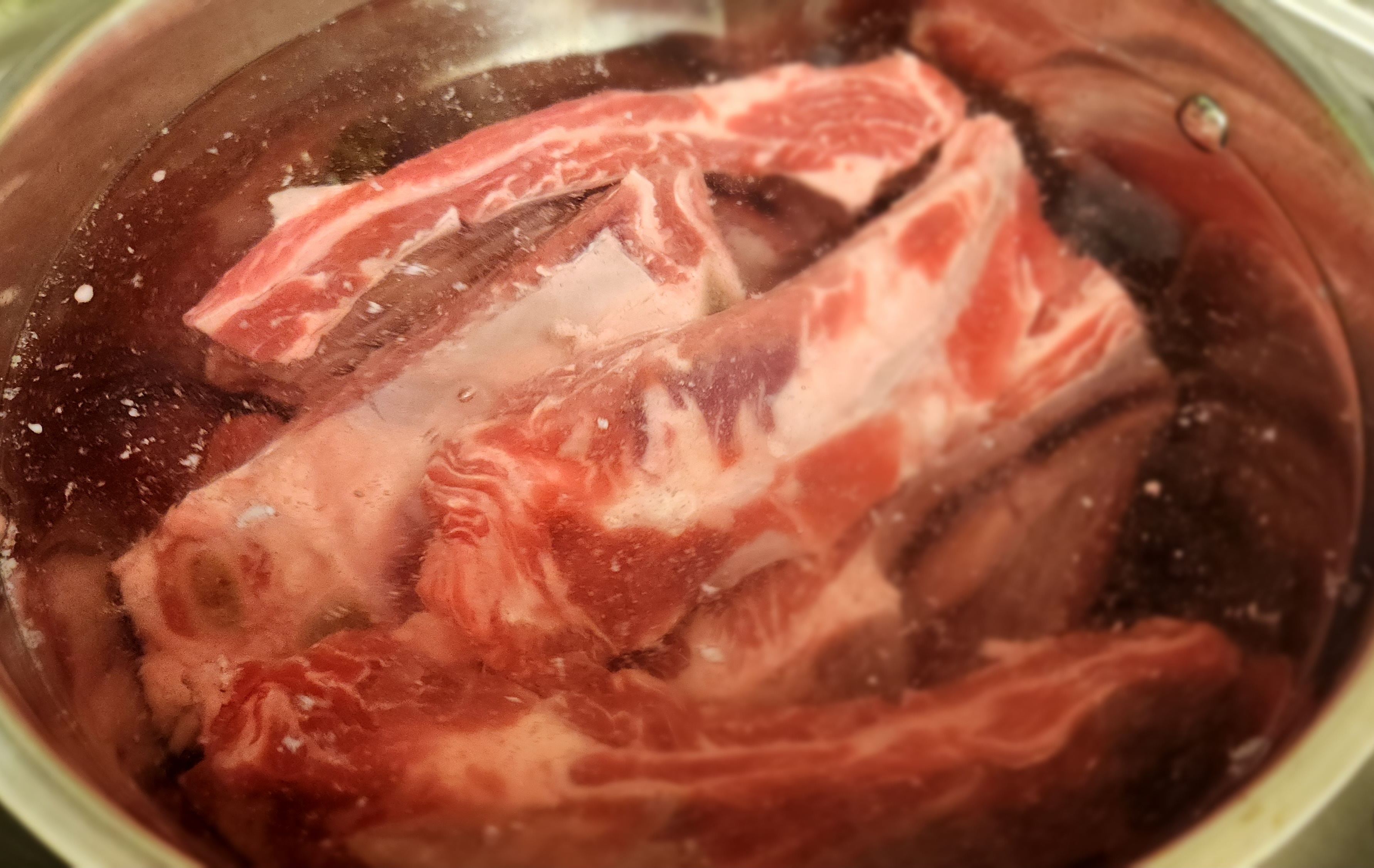 끓은 물에 고기를 넣고 다시 물을 끓으면 그때부터 10분 정도 데쳐주면 된다.