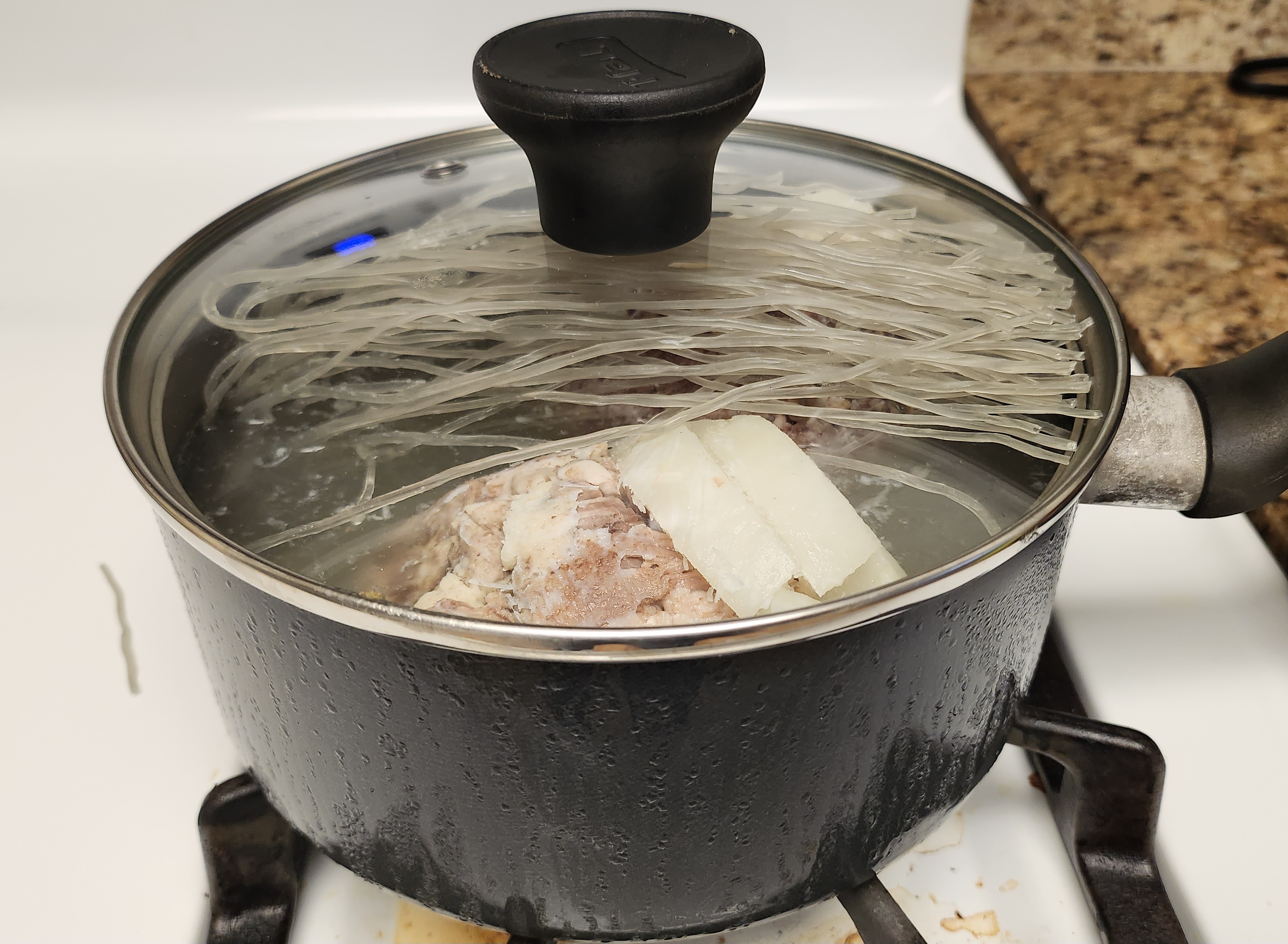 육수+고기+당면을 넣고 당면이 말랑해질 때까지 기다려 준다. 당면은 따로 불려도 되지만 귀찮으니 한 번에 넣어주었다.