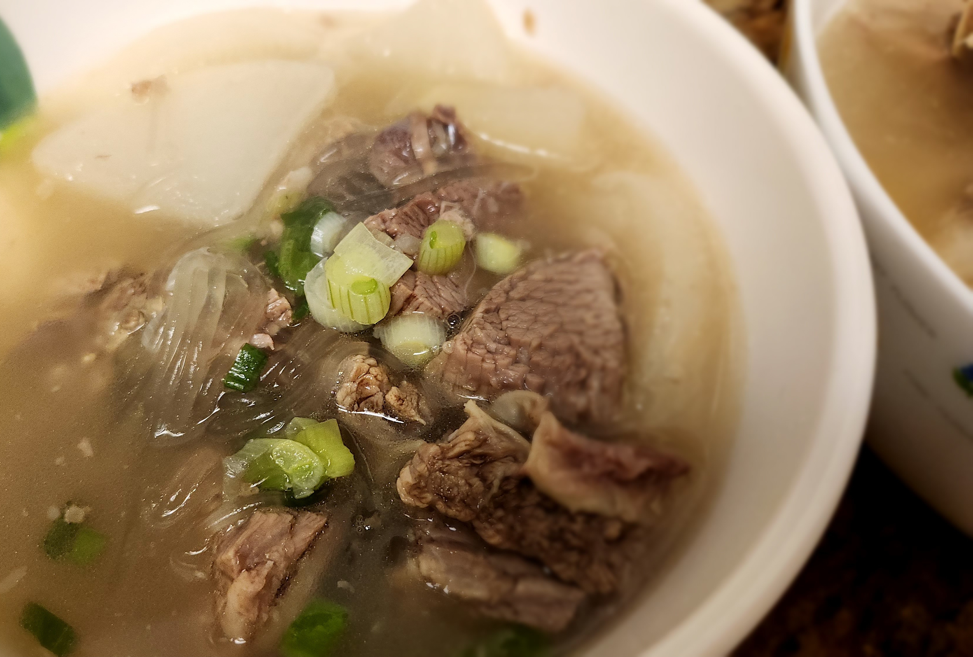 소요시간 : 핏물 빼기 3시간 - 데치기 약 30분 - 끓이기 약 2시간 - 육수에 기름 굳히기 반나절